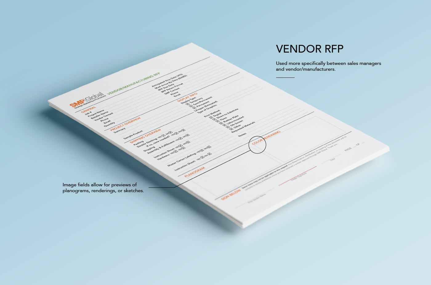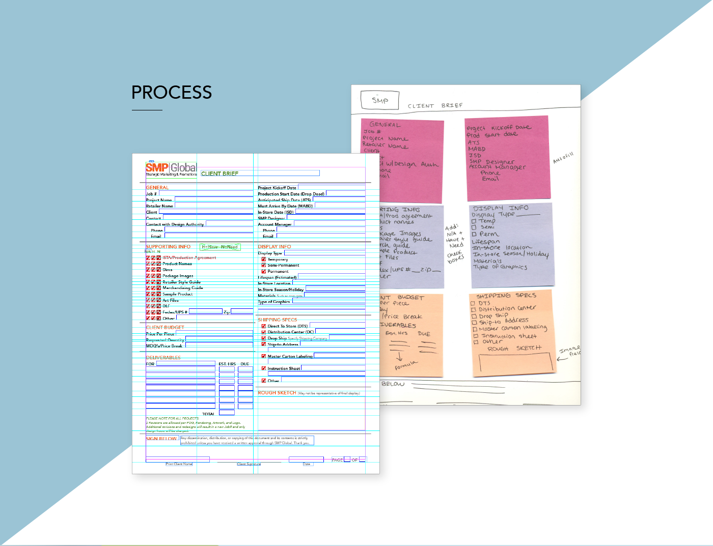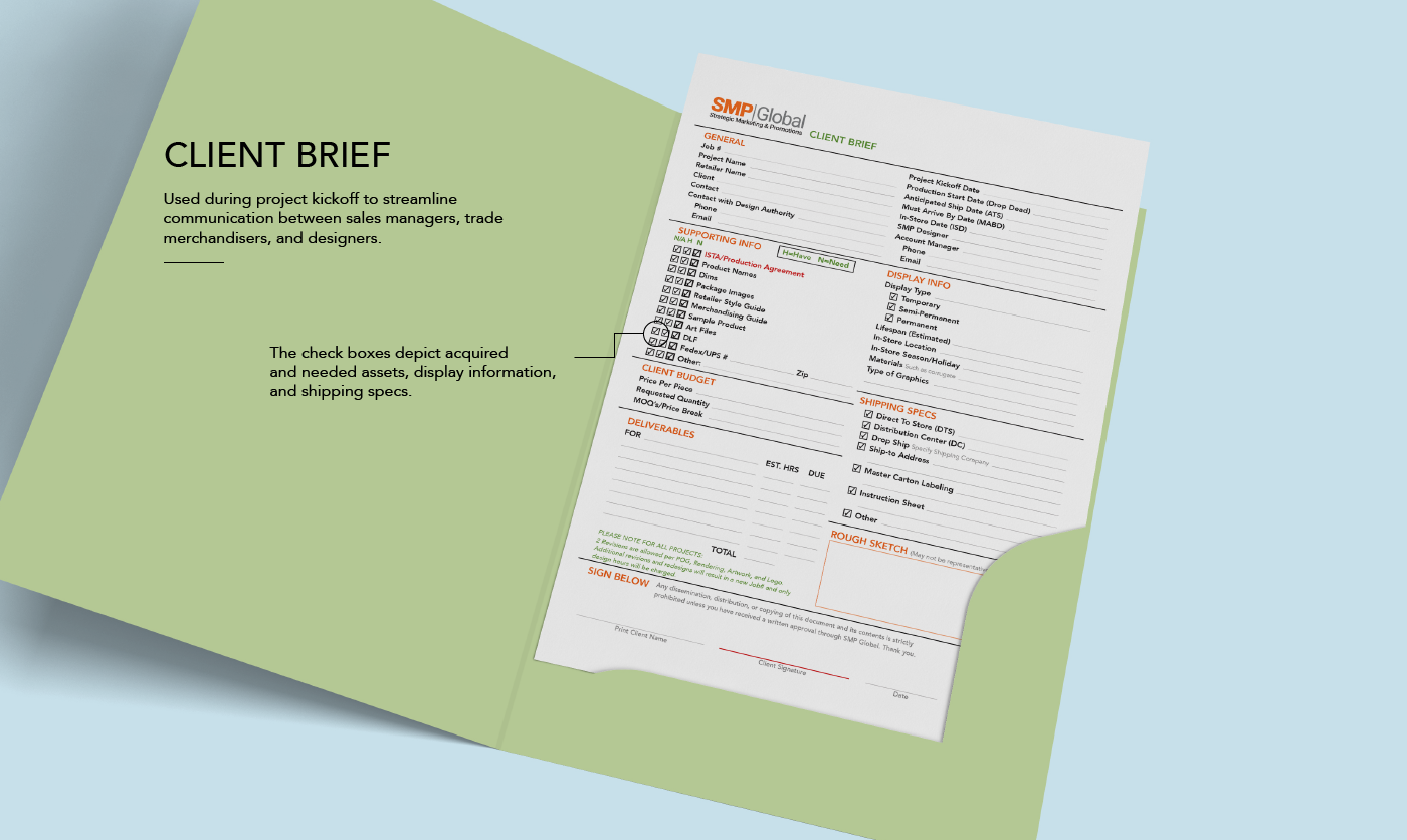 This series of interactive PDFs was created to streamline communication between sales managers, trade merchandisers, and designers during project kickoff.